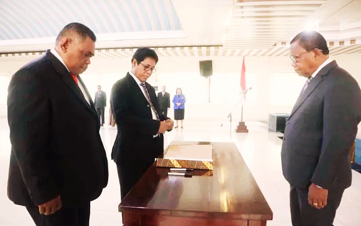 AMBON,KM– Hendrik Salmon dilantik sebagai Dekan Fakultas Hukum (FH), Universitas Pattimura (Unpatti) periode 2024-2028. Pengambilan sumpah, pelantikan dan serah terima jabatan dipimpin langsung oleh Rektor Fredy Leiwakabessy di Gedung Rektorat Unpatti, Jumat