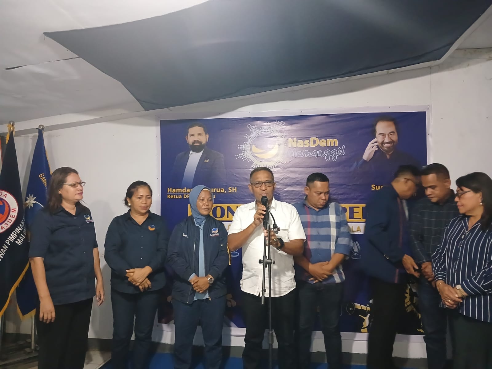 Komandan Pangkalan Utama TNI Angkatan Laut (Danlantamal) IX Ambon, Brigjen Mar Said Latuconsina datangi kantor sekertariat DPW Partai Nasional Demokrasi (Nasdem) Maluku sekira pukul 20.18 WIT, di Jalan. Melati, Kelurahan Hunipopu, Kecamatan Sirimau, Kota Ambon, di dampingi tim pemenangnya, Selasa (7/5/2024).