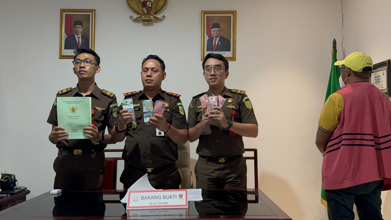 Diketahui, terhadap tersangka MAH tim Penyidik telah menyita barang bukti berupa 1 buah Sertifikat Hak Milik (SHM) Atas nama HBT, 1 (Satu) unit Mobil Daihatsu Sigra Tahun 2020 atas nama CC dan uang tunai sebesar Rp. 51.750.000. (KM01)
