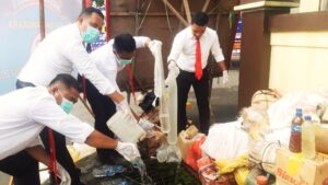 AMBON, KM– Polresta Ambon dan Pulau-pulau Lease memusnahkan ribuan liter minuman keras tradisonal jenis sopi. Pemusnaan minuman keras ini usai melaksanakan upacara HUT ke-78, Senin (1/7/2024)