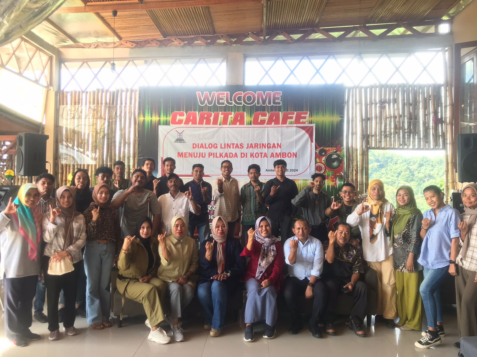 Dialog publik yang digelar di Carita Caffe Sabtu (13/7/2024) kemarin menghadirkan narasumber dari Komite Nasional Pemuda Indonesia (KNPI) Provinsi Maluku dan Badan Pengawas Pemilu (Bawaslu) Provinsi Maluku.