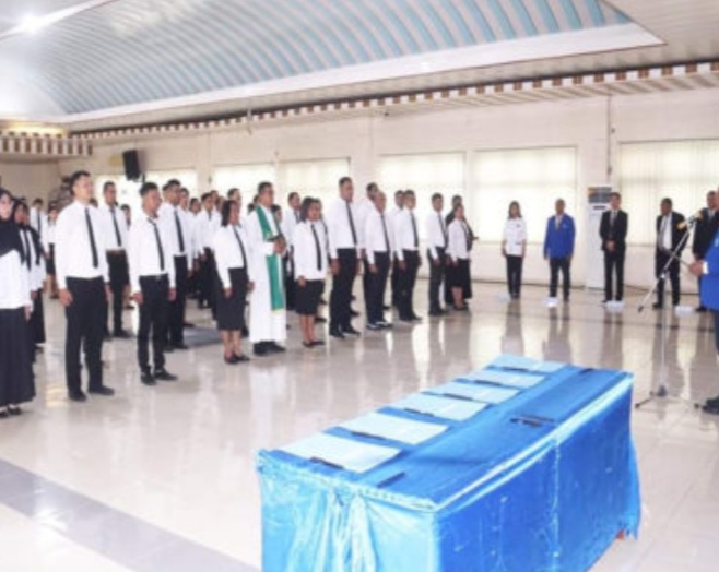 AMBON,KM.–Sebanyak 86 Pegawai Pemerintah dengan Perjanjian Kerja atau PPPK tahun anggaran 2023 di lingkup Universitas Pattimura (Unpatti) Ambon, dilantik dan diambil sumpahnya oleh Rektor Unpatti, Prof. Dr. Fredy Leiwakabessy, Senin (22/7/2024).