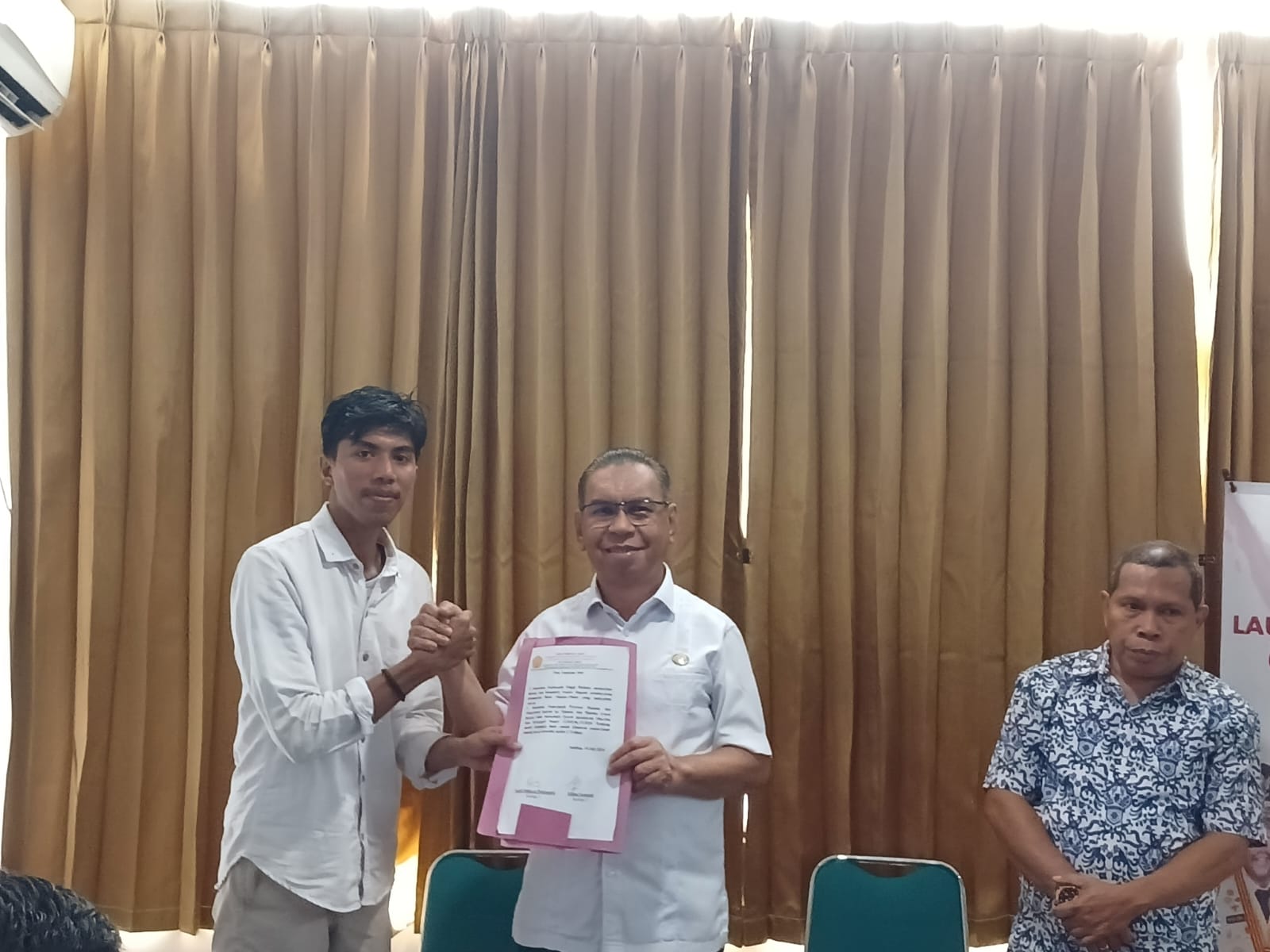 Setelah melakukan Mediasasi, kemudian masa aksi menyerahkan poin tuntunnya kepada Pemrov Maluku yang diterima langsung oleh Kesbang Pol, Daniel. (KM02).