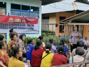 Ps Kasubsi Penmas Sie Humas Polres SBB AIPDA Malafiana S. Katipana mengatakan, program Polwan Masuk Desa ini, terus ditingkatkan dengan menyambangi ibu-ibu di seluruh desa yang ada di Kabupaten SBB, khususnya di desa Niniari, Kecamatan Seram Barat, SBB, untuk menyampaikan pesan-pesan kamtibmas.