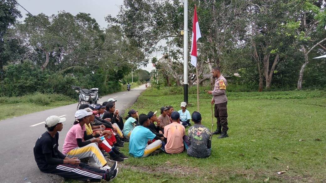 AMBON,KM– Bhabinkamtibmas Polsek Kairatu, Bripka Abraham Wemay menghadiri dan ikut melatih paskibra tingkat Kecamatan Inamosol dalam Rangka HUT RI Ke-79 di Kecamatan Inamosol Kabupaten Seram Bagian Barat (SBB)