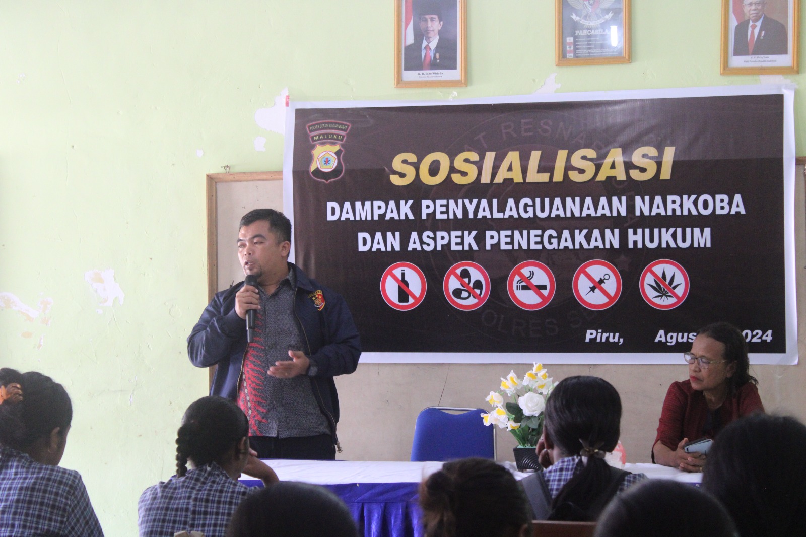 Sosialisasi Narkoba dengan tema “Dampak Penyelahgunaan narkoba dan Aspek Penegakan Hukum” itu berlangsung di SMP Kristen Piru yang diikuti 50 siswa siswi pada Kamis (1/8/2024)