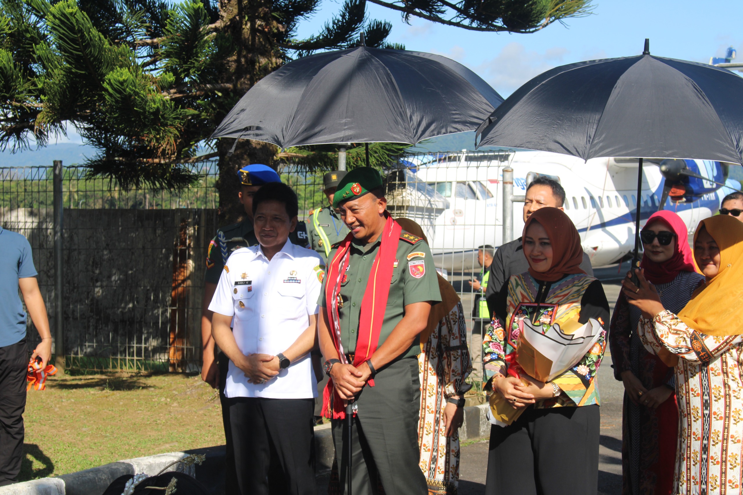 AMBON,KM.–Pangdam XV/Pattimura Mayjen TNI, Putranto Gatot Sri Handoyo didampingi istri Henny Putranto tiba di kota Ambon Maluku, Rabu (25/9/2024).