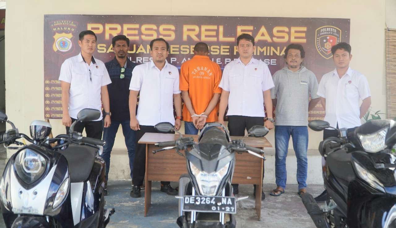 AMBON,KM.– Pelaku pencurian kenderaan sepeda motor di pulau Saparua, Haruku dan Kota Ambon berinisial THL (20) ini berhasil dibekuk tim Buser Satuan Reserse Kriminal Polresta Pulau Ambon dan Pp Lease.