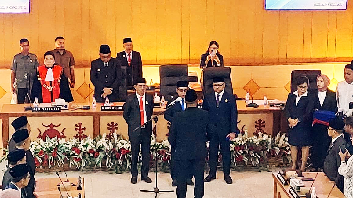 Morits dilantik dan diambil sunpah janji menjadi ketua DPRD oleh Ketua Pengadilan Negeri Klas I Ambon, Nova Loura Sasube, dalam rapat paripurna DPRD Kota Ambon, yang digelar di kantor DPRD Ambon, belakan Soya, Kecamatan Sirimau, Jumat (18/10/2024).