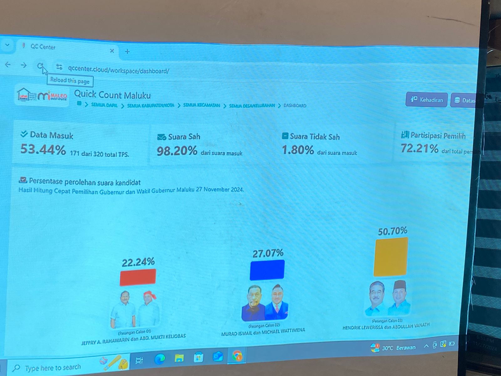 Ketua tim pemenangan Paslon nomor urut 3, Said Assagaf menjelaskan, berdasarkan perihitungan sementara dari Quick Count Komisi Pemilihan Umum (KPU) Maluku, Paslon dengan tegline Par Maluku Pung Bae telah memengkan pertarungan hari ini.