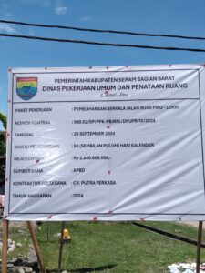 Proyek Jalan sepanjang satu kilo meter itu dikerjakan oleh CV.Putra Perkasa menggunakan anggaran APBD tahun 2024 sebesar Rp 2.840.609.000 dengan tenggang waktu selama 90 hari kalender terhitung sejak tanggal 26 September 2024.