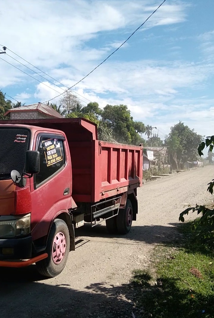 “Hampir sebagian besar rumah di sepanjang jalan dipenuhi debu, bahkan tembok-tembok masjid. Kasihan ibu ibu, mereka resah dengan aktivitas mobil proyek pembawa material, membuat mereka kewalahan mengamankan jualan mereka dari debu pasir” ujarnya kesal