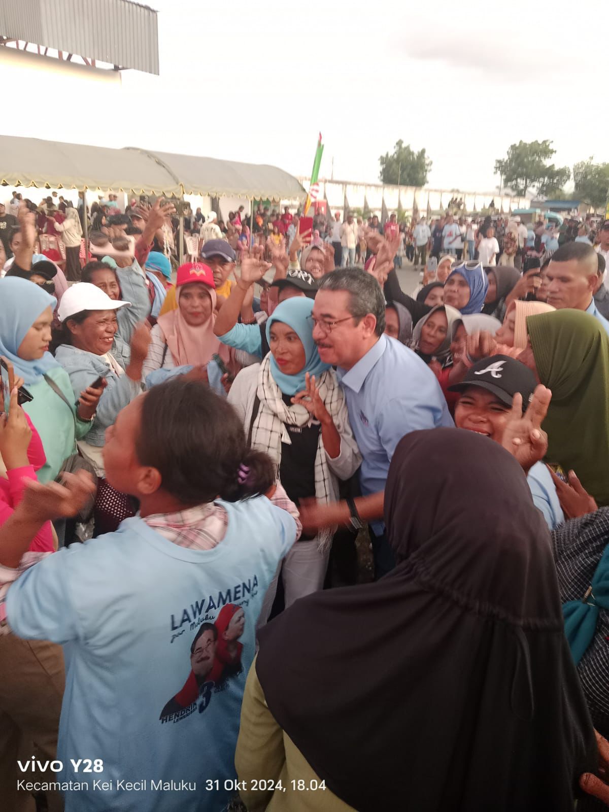 Cagub HL, awali road show kampanye tatap muka Paslon berjargon “Lawamena” di Kepulauan Aru pada Senin (28/10/2024). Kampanye di Aula Cendrawasih, Kota Dobo, ibukota Kabupaten Aru dihadiri sekitar 1.500an massa pendukung.