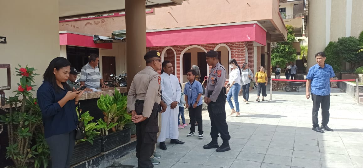 AMBON,KM– Satuan Tugas (Satgas) Operasi Lilin Salawaku Polda Maluku melakukan pengamanan tempat ibadah di sejumlah gereja besar di kota Ambon.