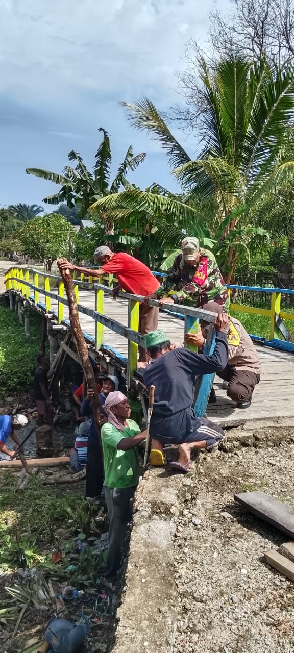 AMBON,KM– Bhabinkamtibmas Bripka Safrijal dan Babinsa Desa Luhutuban, Serka La Hariyanto kembali melakukan perbaikan jembatan penghubung antar desa di Dusun Namae Desa Luhutuban, Kecamatan Kepulauan Manipa, Seram Bagian Barat (SBB)