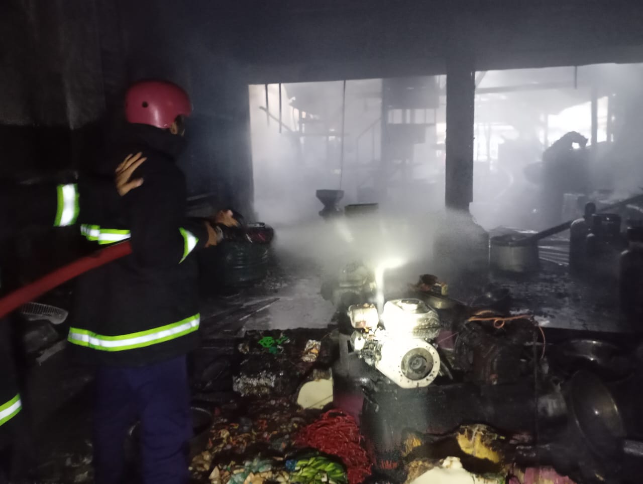 Kebakaran tersebut menghanguskan bagian dapur yang terletak di lantai dua gedung. Para karyawan berusaha memadamkan kobaran api dengan pelaralatan seadanya. Nanum, kobaran api semakin membesar.