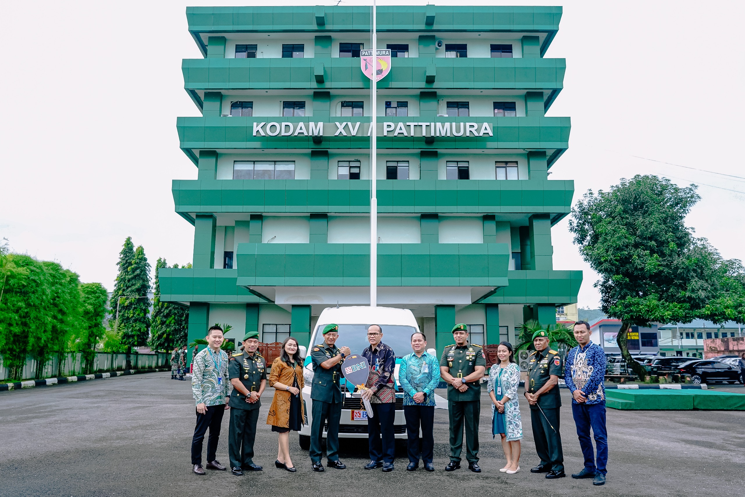 “Dengan penuh rasa syukur kepada Tuhan Yang Maha Kuasa, kami menyerahkan bantuan satu unit mobil Toyota Hiace sebagai bentuk komitmen BNI sebagai bank mitra Kodam XV/Pattimura. Bantuan ini diharapkan menjadi simbol sinergi yang memberi nilai tambah bagi kedua institusi,” ujar Alexander dalam sambutannya.