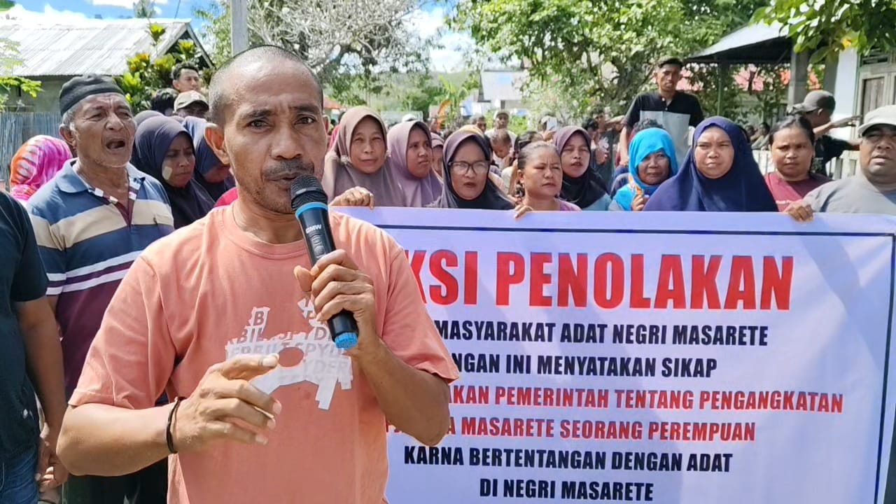 AMBON,KM– Masyarakat Adat Negeri Masarete, kecamatan Teluk Kayeli, Kabupaten Buru, melalukan aksi demonstrasi, menolak pengangkatan penjabat kepala desa perempuan.