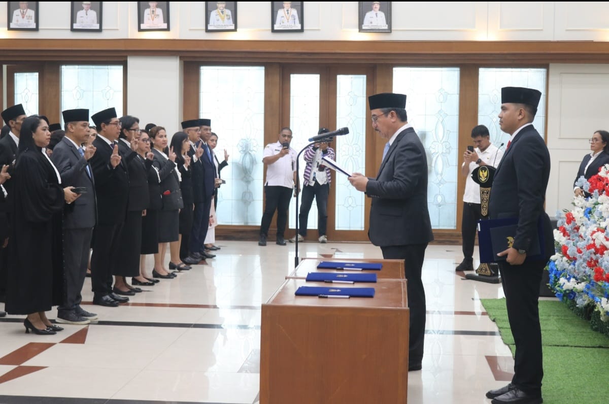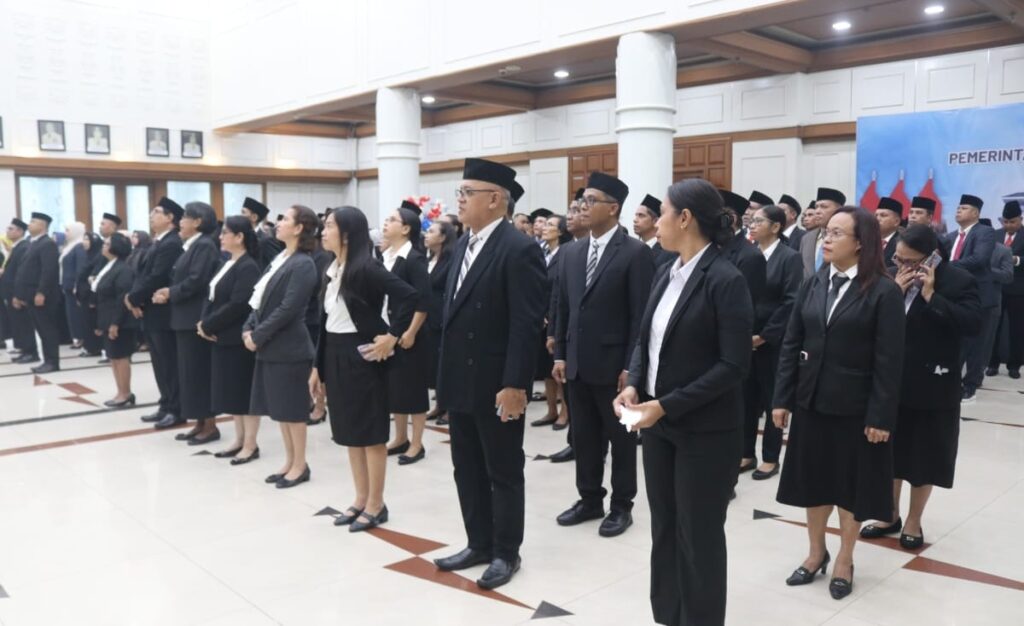 KILASMALUKU.ID, AMBON- Gubernur Maluku, Hendrik Lewerissa, melantik pejabat administrator dan pengawas eselon III dan IV di lingkungan Pemerintah Provinsi Maluku, bertempat di Aula Lantai VII Kantor Gubernur Maluku, Rabu (3/9). Acara pelantikan ini merupakan bagian dari upaya Pemprov Maluku untuk meningkatkan tata kelola pemerintahan dan menciptakan birokrasi yang kuat serta profesional.