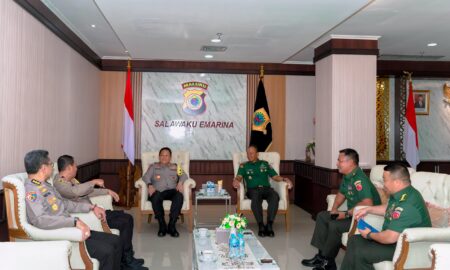 AMBON,KM.–Pangdam XV/Pattimura Mayjen TNI Putranto Gatot Sri Handoyo, S.Sos., M.M., mengunjungi Kapolda Maluku Irjen Pol. Drs. Eddy Sumitro Tambunan, M.Si., di...