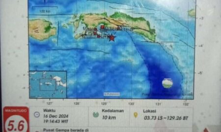 AMBON,KilasMaluku.- Gempa bumi tektonik berkekuatan Magnitudo 5,6 kembali mengguncang beberapa wilayah di Provinsi Maluku. Tidak berpotensi Tsunami. Wilayah tersebut yakni, Kabupaten...