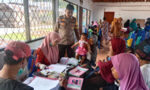 AMBON,KM–Bhabinkamtibmas Desa Tonu Jaya Bripka Ridwan turut mendampingi pemberian Imunisasi Polio oleh Tim Kesehatan Puskesmas Tahalupu di Balai pertemuan Desa dan SD...