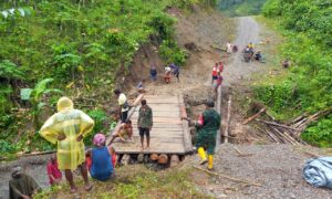 AMBON, KM– Babinsa Koramil 1513 Taniwel serka Maketake, bantu warga buat jembatan darurat di Desa Niniary, Kecamatan Taniwel Kabupaten Seram Bagian...