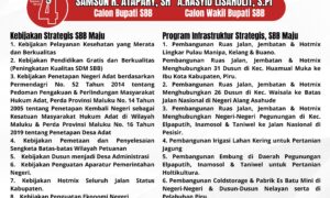 AMBON,KM– Pasangan Calon Bupati dan Wakil Bupati Seram Bagian Barat (SBB) Samson R. Atapary-Abdul Rasyid Lisaholid mendapat tanggapan positif dari sejumlah akademisi...