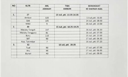 AMBON,KM– Kantor wilayah Kementerian agama Provinsi Maluku menjadwalkan pemulangan jemaah haji asal Maluku. Jemaah Haji Maluku yang terbagi dalam tiga kloter diketahui...